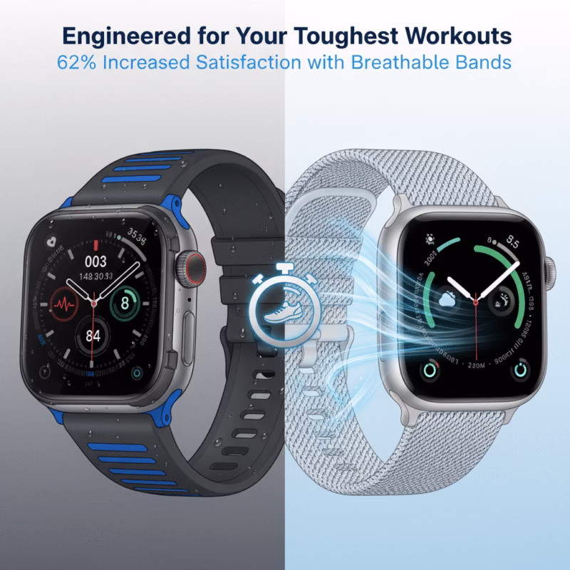 These straps don’t just look good—they’re built to keep you cool when things heat up. Whether you’re rocking an indoor spin class or sprinting outdoors with your Apple Watch Series 9, comfort and performance go hand-in-hand with these lightweight designs.