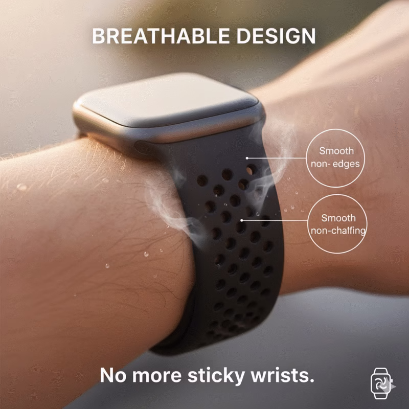 • High-intensity cardio means sweat—lots of it—and that’s where breathable bands come in clutch. The perforated design in these silicone sport bands keeps airflow constant, so your wrist doesn’t feel like it’s wrapped in cling film.